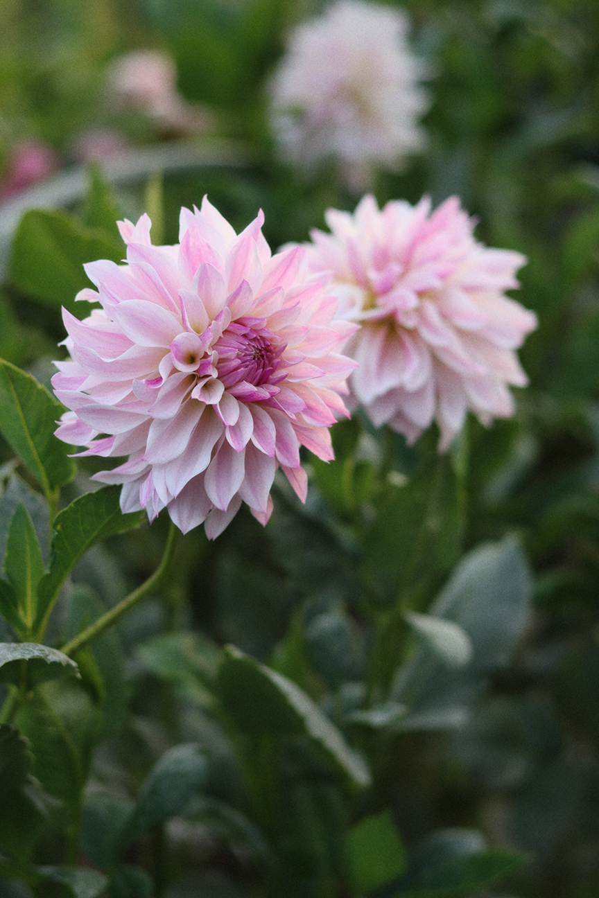 Bloomquist Compare carries classic formal decorative blooms, typically about 5–6 inches across, in a soft ombré of pale ivory to lavender that deepens as days shorten. The plants are generally 3–4 feet tall with strong stems and prolific flowering, making it a reliable choice for both garden display and cutting work.